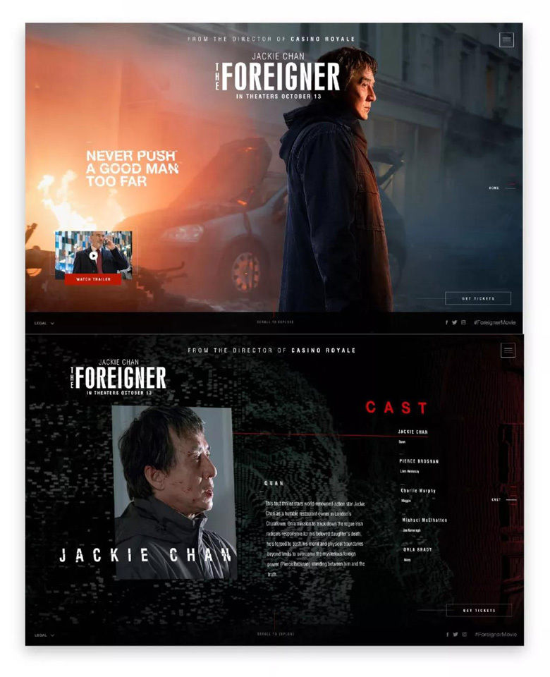这是由成龙主演的电影《The Foreigner》官方网站设计的网页作品。