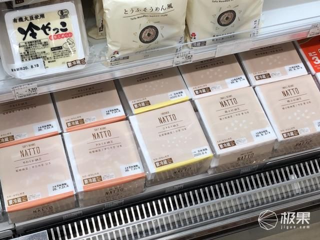 在上图中,实际上有三种不同的纳豆,基本上可以说是“大家来找茬”的级别。而且包装上最大的词不是日文,而是纳豆的英文“ NATTO”,强行“洋气”了一波。